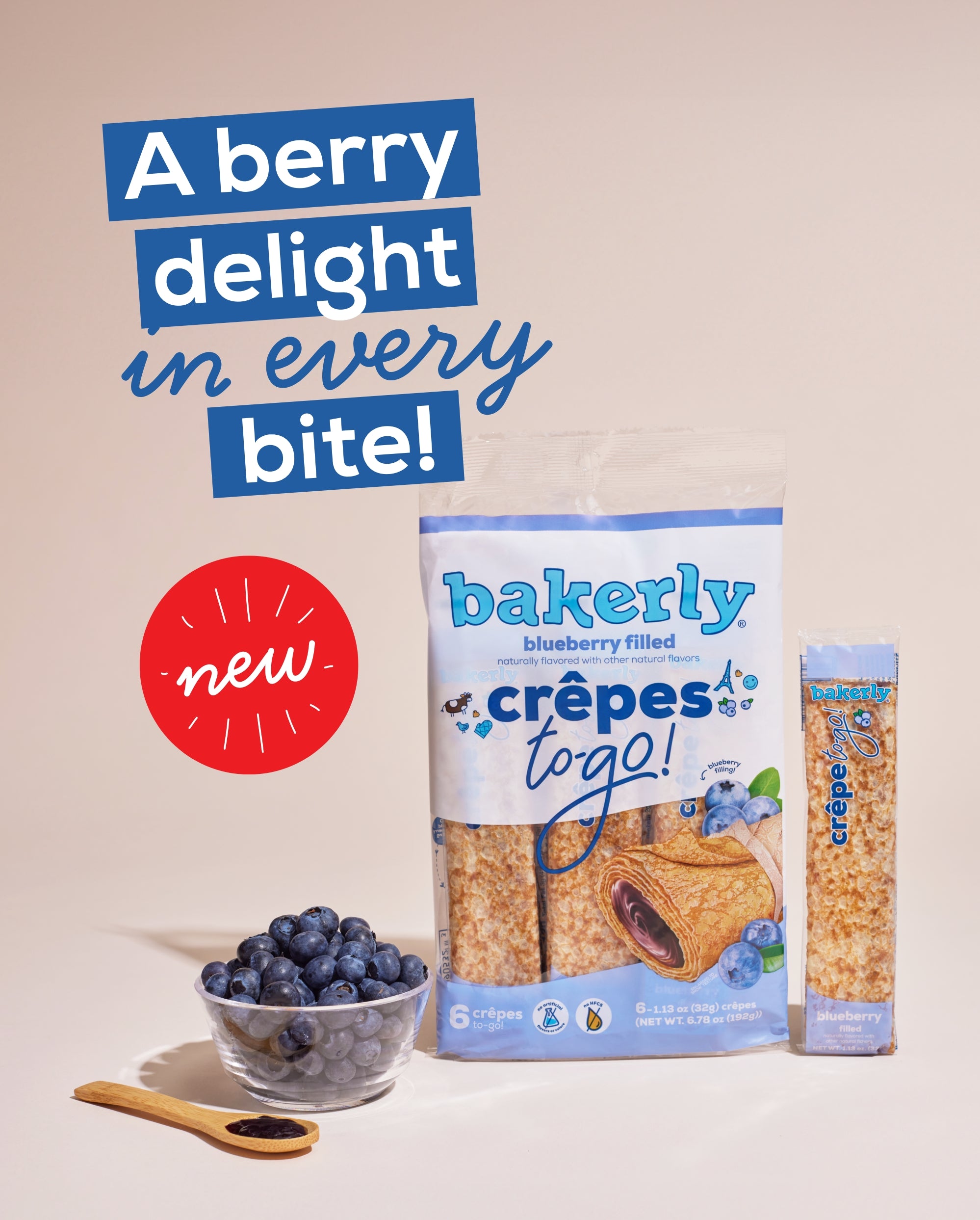 Enjoy a taste of authentic French bakery goodness combined with the sweet, natural flavor of blueberries, anytime and anywhere, with Bakerly’s Blueberry Crêpes To-Go.
