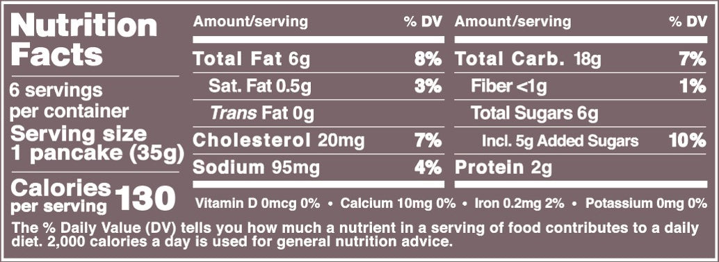 Our tasty pancakes have a shelf life of 28 days, and can be stored at room temperature.