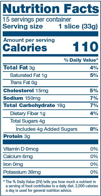 Ingredients: Wheat flour, water, eggs, sugar, canola oil, natural flavor, salt, mono- and diglycerides, yeast, deactivated yeast, beta carotene (color), enzymes, acerola extract.